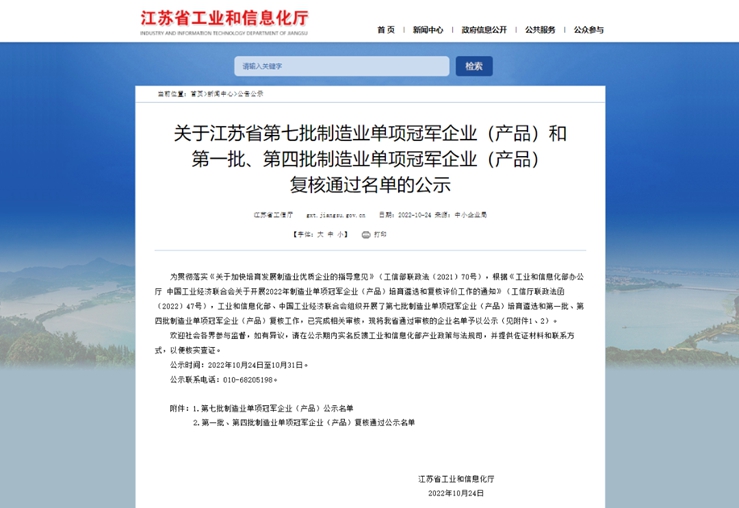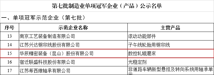 近日,工業(yè)和信息化部、中國工業(yè)經(jīng)濟聯(lián)合會組織開展了第七批制造業(yè)單項冠軍企業(yè)(產(chǎn)品)培育遴選工作,江蘇省工業(yè)和信息化廳公布了第七批制造業(yè)單項冠軍企業(yè)擬認定名單,周市鎮(zhèn)華辰精密裝備(昆山)股份有限公司成功入選,是昆山首家獲此殊榮的企業(yè),實現(xiàn)了從省級專精特新中小企業(yè)、國家級專精特新“小巨人”企業(yè)到國家級制造業(yè)單項冠軍企業(yè)“三級跳”。